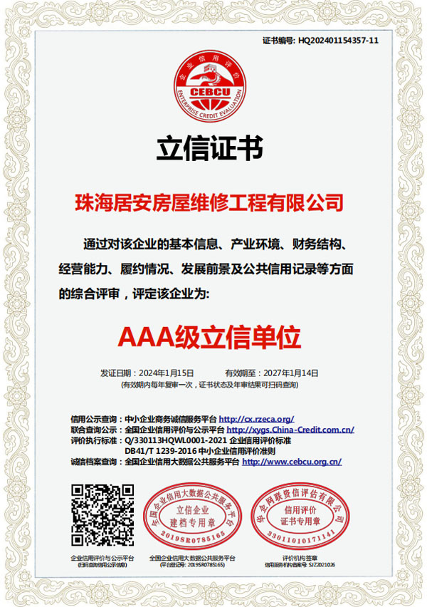珠海居安房屋維修工程有限公司成立于2020年,是一家專注房屋維修的公司。我們擁有各類型專業(yè)人才,業(yè)務(wù)包括老舊建筑翻新改造、外墻空鼓修復(fù)、防水幕墻養(yǎng)護(hù)、外墻預(yù)置構(gòu)件拆除更換、供排水管網(wǎng)改造、墻面翻新、鋼制結(jié)構(gòu)建筑構(gòu)建及折除,外墻清洗及裝修裝飾。 公司自成立以來,始終堅(jiān)持以人為本、誠信敬業(yè)的經(jīng)營原則,與多家單位達(dá)成固定維修、養(yǎng)護(hù)清洗協(xié)儀,業(yè)務(wù)遍及廣州、東莞、中山、珠海等多個(gè)周邊城市。專業(yè)化團(tuán)隊(duì)尤其在墻面及窗邊防水工程業(yè)內(nèi)知名。…… >>> 更多內(nèi)容 |